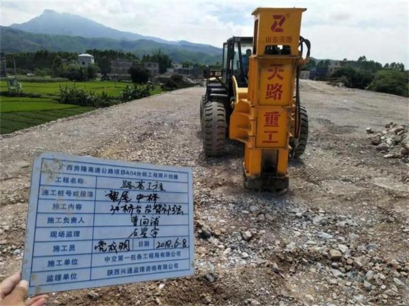 貴隆高速公路施工現(xiàn)場,隨著一陣 “噠噠噠噠”脈沖式的液壓聲響,地下便呈現(xiàn)出了數(shù)個(gè)圓餅狀的凹坑,這是貴隆項(xiàng)目總承包部的液壓夯實(shí)機(jī)正在施工作業(yè)。在試用完**臺高速液壓夯實(shí)機(jī)后,天路重工憑借出色的表現(xiàn)獲得全線認(rèn)可,截至目前,貴隆高速全線共采用四臺天路重工高速液壓夯實(shí)機(jī)。