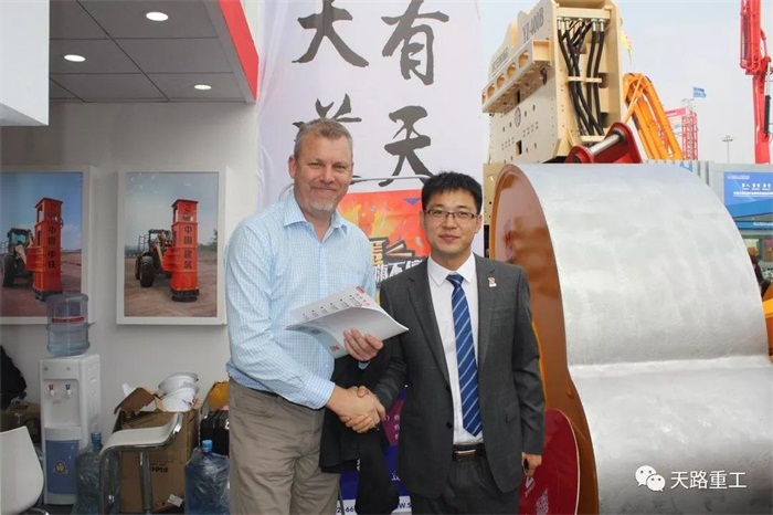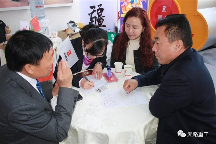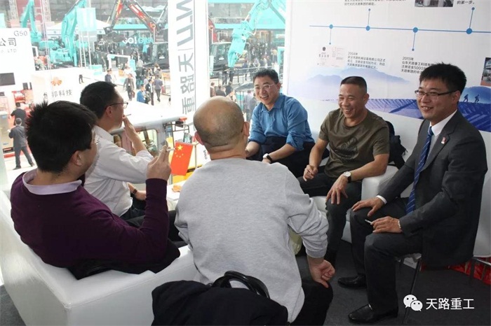 展會現(xiàn)場,天路重工展廳內(nèi)外人潮涌動,熱鬧非凡,吸引了大批國內(nèi)外客戶及同行前 來參觀、洽談,更有多個客戶當(dāng)場簽下產(chǎn)品訂單,亦有多家公司對表示了天路重工產(chǎn)品的 高度認(rèn)可,達(dá)成合作意向。