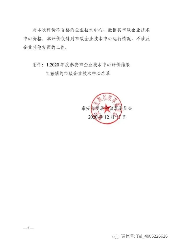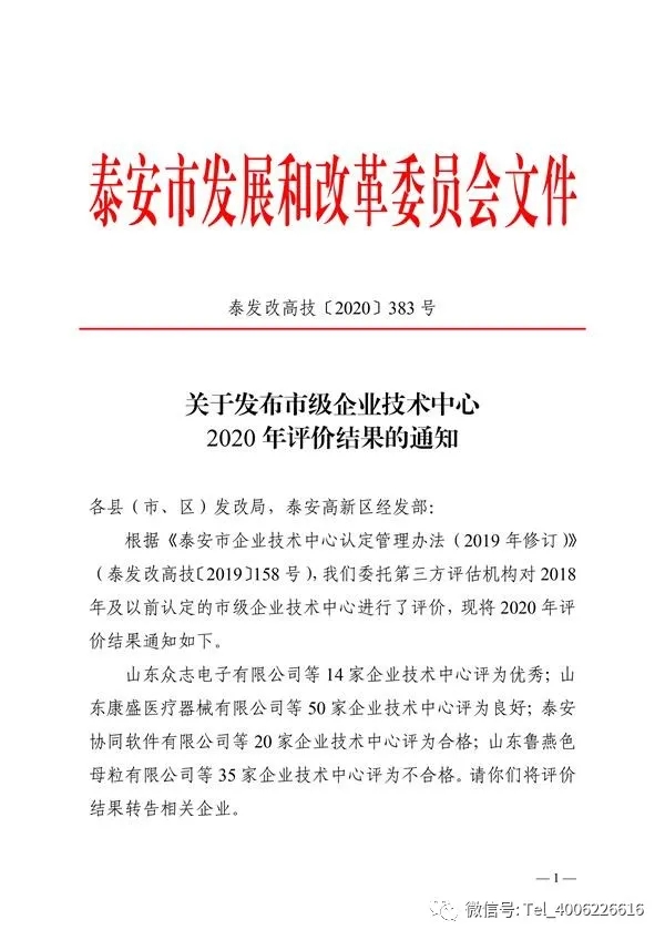 2020年12月17日,泰安市發(fā)展和改革委員會公布了2020年度泰安市企業(yè)技術(shù)中心認定評審結(jié)果的通知,山東天路重工科技有限公司榮列其中,被認定為市級企業(yè)技術(shù)中心,評審結(jié)果為良好。